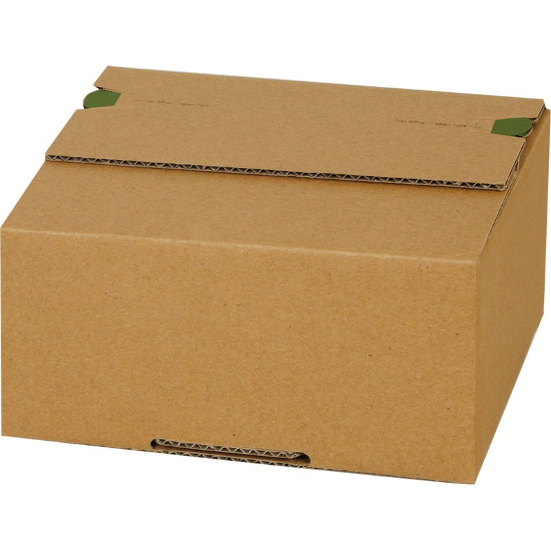 GRÜNMARIE® Fix-Aufrichtekarton stabile Wellkarton-Qualität, schnelles Aufrichten durch funktionelle Blitzboden-Ausführung, Selbstklebeverschluss, Aufreissband. Nachhaltigkeit eco:plus: kompostierbar, abbaubar, recyclingfähig, recycelter Bestandteil.