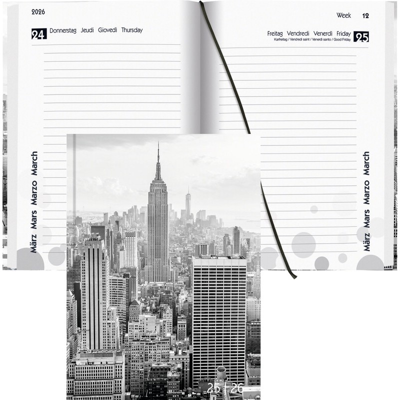 BIELLA Schüleragenda mydiary 1 Tag pro Seite, Einband bedruckter und laminierter Papierüberzug, Kalendarium viersprachig d/f/i/gb, August - Juli, querliniert, mit Jahres- und Monatsseiten, Informationsteil, grosser Notizraum, Eckenperforation, Zeichenband, Format: 12 x 16,5 cm. Nachhaltigkeit eco:plus: Zertifikat: FSC. City