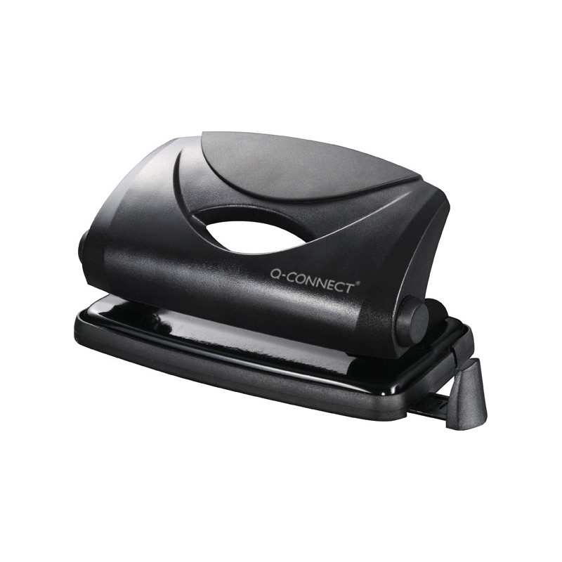 Q-CONNECT® Locher light robuste Mechanik aus Stahlblech, Griffteil aus ABS, für 8 cm Lochabstand, mit Anschlagschiene, Stanzvermögen ca. 1 mm (10 Blatt).