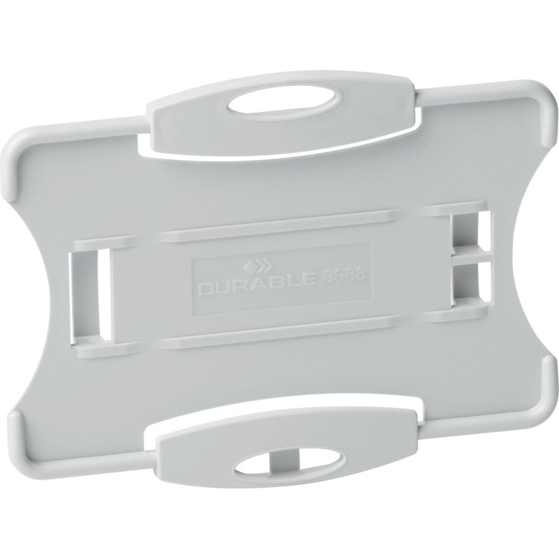 DURABLE Ausweishalter ECO aus recyceltem Kunststoff, offene Ausführung, einsetzbar im Hoch- oder Querformat, kombinierbar mit Kette, Clip, Textilband oder einem Jojo. Innenmasse: B 87 x H 54 mm. Packung zu 10 Stück. Nachhaltigkeit eco:plus: recyclingfähig, recycelter Bestandteil, Recycelgehalt Abfall nach Gebrauch max. 60%, umweltfreundliche Verpackung. Zertifikat: Der Blaue Engel.