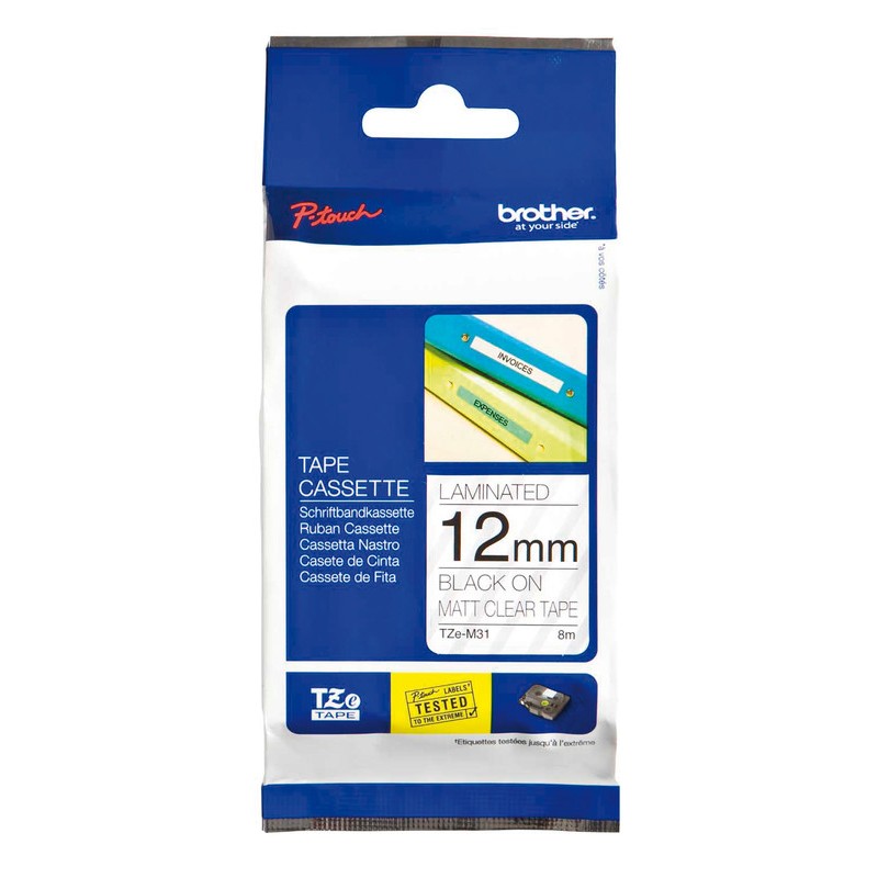 BROTHER P-touch Schriftband TZe laminiert wisch-, wetter- und kratzfest, temperatur- und UV-beständig, für zu Hause, im Büro und am Arbeitsplatz. Breite 12 mm, Länge 8 m