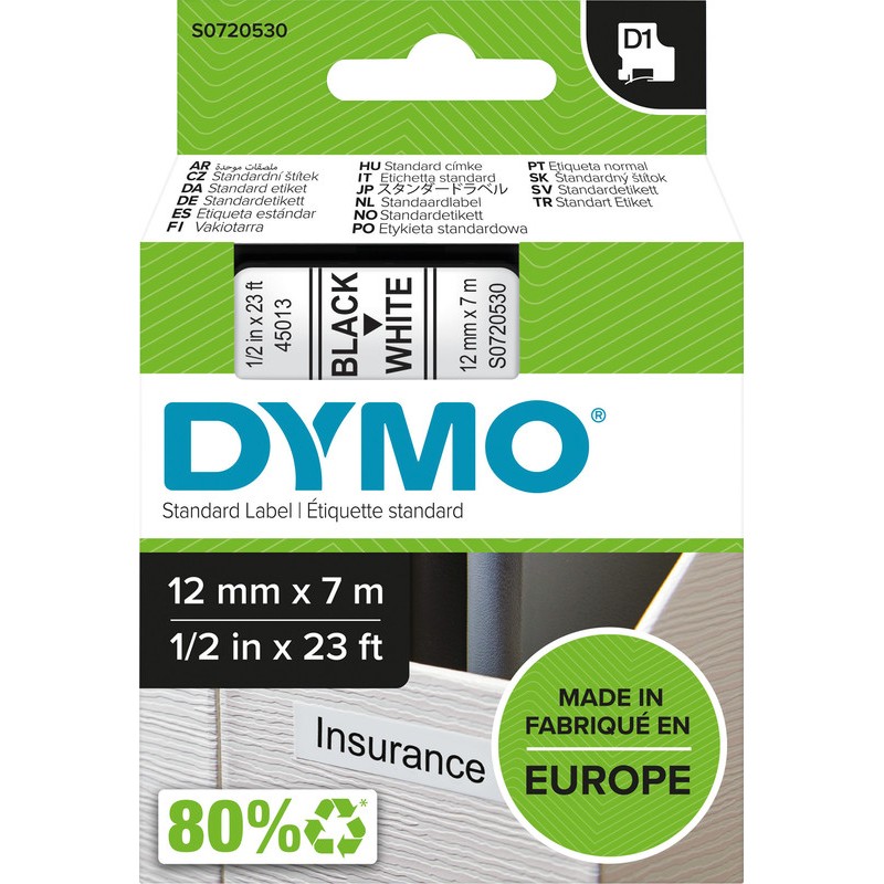 DYMO® Schriftband D1 für LabelPoint 200, 250, 300, 350, LabelManager 100+, 120P, 150, 160, 200, 210D, 220P, 260, 280P, 300, 350D, 360D, 400, 420P, 450D, 500TS, PnP Wireless, MobileLabeler. Breite 12 mm, Länge 7 m