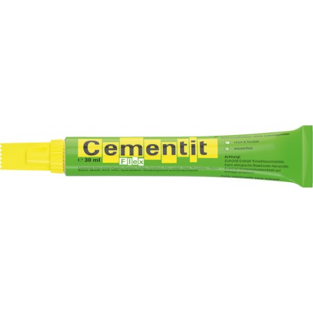 CEMENTIT® Flex flüssig, elastisch, stark, geruchlos, auch bei Nässe anwendbar, beständig gegen Erschütterungen und Vibrationen, klebt Aluminium, Eisen, Messing, Kupfer, Keramik, Spiegel, Glas, Holz, Gummi, Papier, Karton, Stein, Leder, Textil, Kunststoff, pulverbeschichtete, lackierte, galvanisierte, anodisierte, verchromte und feuerverzinkte Oberflächen, lösungsmittelfrei. Nachhaltigkeit eco:plus: verlängertes Produktleben, umweltfreundliche Verpackung.