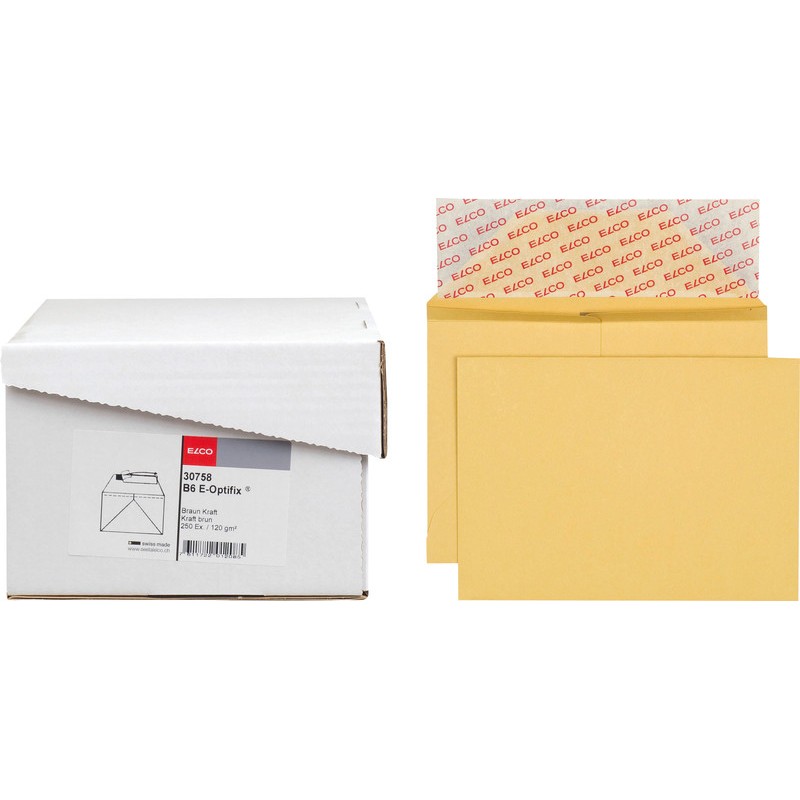 ELCO Briefumschläge Wert Kraft braun in Bürogrosspackung B6, mit Optifix® Haftklebeverschluss 176 x 125/60 mm, Façon E-HK. Schachtel zu 250 Stück.