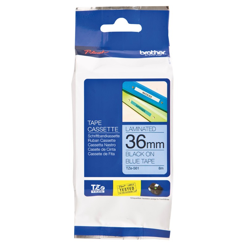 BROTHER P-touch Schriftband TZe laminiert wisch-, wetter- und kratzfest, temperatur- und UV-beständig, für zu Hause, im Büro und am Arbeitsplatz. Breite 36 mm, Länge 8 m