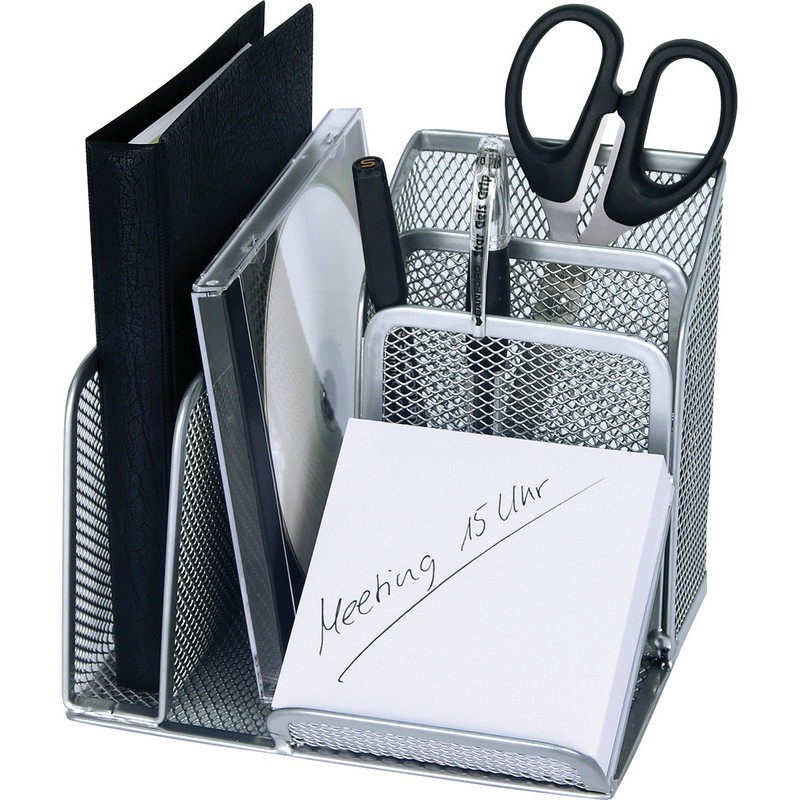 WEDO® Multiköcher Office aus Drahtmetall, mit 4 Fächern, Schrägablage. Masse: B 158 x H 135 x T 145 mm.