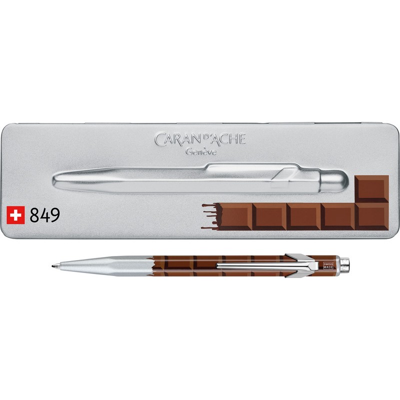 CARAN D'ACHE Kugelschreiber 849(TM) Popline Totally Swiss Aluminiumschaft, Clip, Druckmechanik, Goliath-Mine, Schreibfarbe blau, nachfüllbar, mit Metalletui.