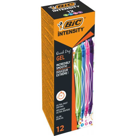 BIC® Roller Gel-ocity® Quick Dry ergonomische Griffzone, Clip, Druckmechanik, Gel-Tinte für ein sanftes, fliessendes Schreibgefühl, Schaft in der Schreibfarbe, schnell trocknend, nachfüllbar, Strichbreite 0,7 mm.