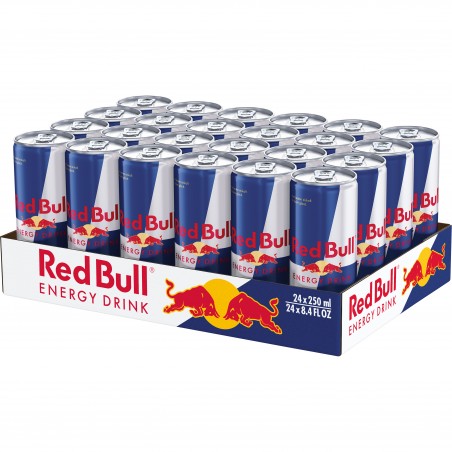 Red Bull Energy Drink ist ein funktionales Getränk, das dir Flügel verleiht, wann immer Du sie brauchst. Weltweit geschätzt von Spitzensportlern, Studenten, in stark fordernden Berufen sowie bei langen Autofahrten. Die spezielle Formel von Red Bull Energy Drink enthält Zutaten höchster Qualität: Koffein, Taurin, B-Komplex-Vitamine, Zucker, alpines Wasser. Kohlensäurehaltig. Erhöhter Koffeingehalt. Für Kinder und schwangere oder stillende Frauen nicht empfohlen (32mg/100ml). Nur in begrenzten Mengen konsumieren. Red Bull Dosen bestehen zu 100% aus recycelbarem Aluminium. Multipack mit 24x250ml Dosen Red Bull Energy Drink.