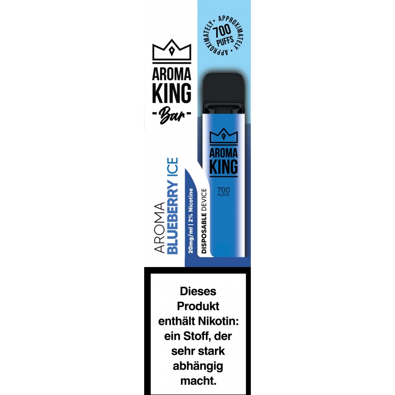 Die berühmt, berüchtigte Einweg-Zigarette mit tollem, intensiven Blaubeergeschmack mit einem Hauch von Minze - hier mit 20 mg Nikotin. Die Aroma King-Liquids kommen allesamt aus Europa. Made in Europe - Loved by Switzerland.