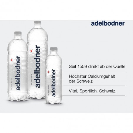 Adelbodner – das klassische Mineralwasser vom Adelboden. Adelbodner Cristal enthält keine Kohlensäure – aber natürlich den vollen Geschmack vom Adelboden!