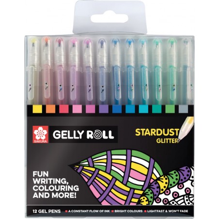 SAKURA® Roller Gelly Kappe mit Clip, wasserbasierte Tinte, schnelltrocknend, für weiches Schreiben und gleichmässigen Tintenfluss, nicht nachfüllbar. Stardust Glitter besondere Glanz- und Glitzereffekte.