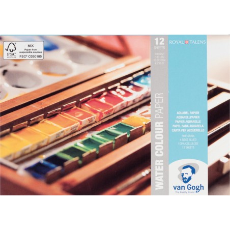 VAN GOGH Zeichen-Aquarell-Block Zeichenpapier weiss, 300 g/m2, feinkörnige und kaltgepresste Textur, vierseitig geleimt, 12 Blatt. Nachhaltigkeit eco:plus: recyclingfähig. Zertifikat: FSC.