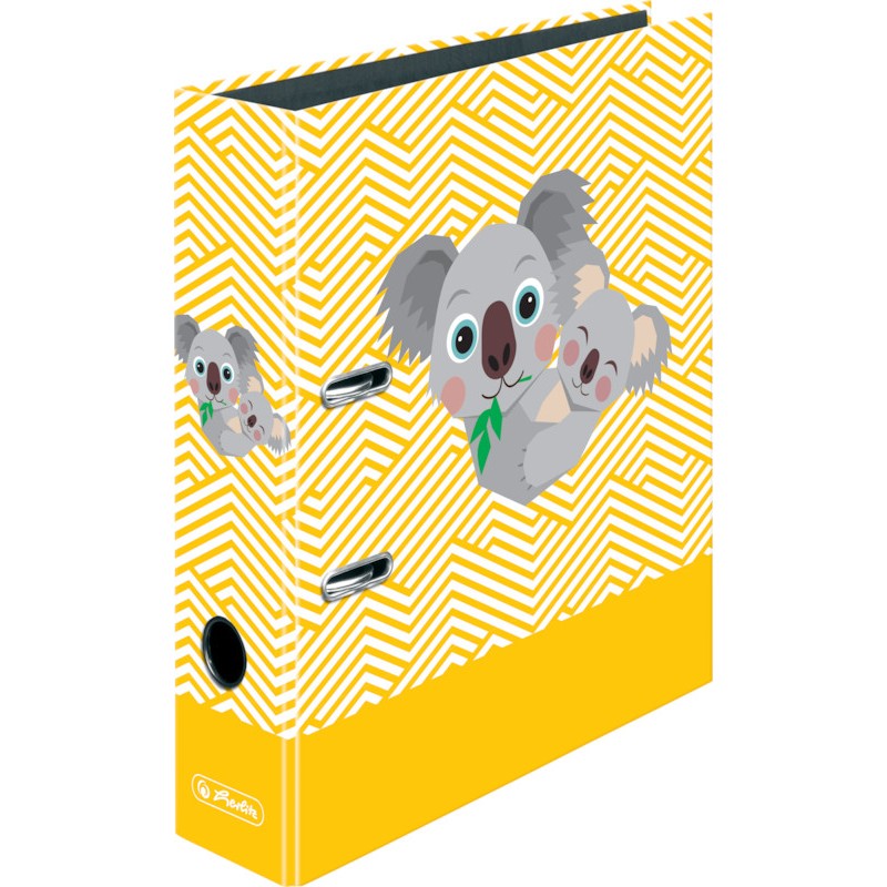 HERLITZ Ordner Cute Animals aus stabilem Karton, Innenspiegel schwarz bedruckt, aussen vollflächig bedruckt, mit Raumsparösen und Griffloch, Hebelmechanik, Rückenbreite 8 cm, für Format A4. Nachhaltigkeit eco:plus: verlängertes Produktleben, recyclingfähig. Zertifikat: FSC.