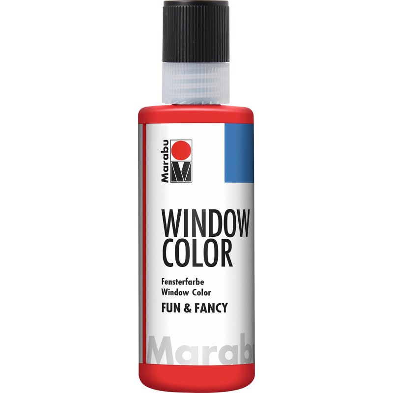 MARABU Fenstermalfarbe Fun & Fancy auf Wasserbasis, transparent, lichtecht, leuchtkräftige und farbintensive Farben, benötigt als Malunterlage eine PP- oder PE-Folie damit das getrocknete Bild wieder abgezogen werden kann, haftet beliebig oft auf Glas, Porzellan, Spiegel, Fliesen etc., leicht und rückstandslos entfernbar. Inhalt 80 ml. Nachhaltigkeit eco:plus: recyclingfähig.