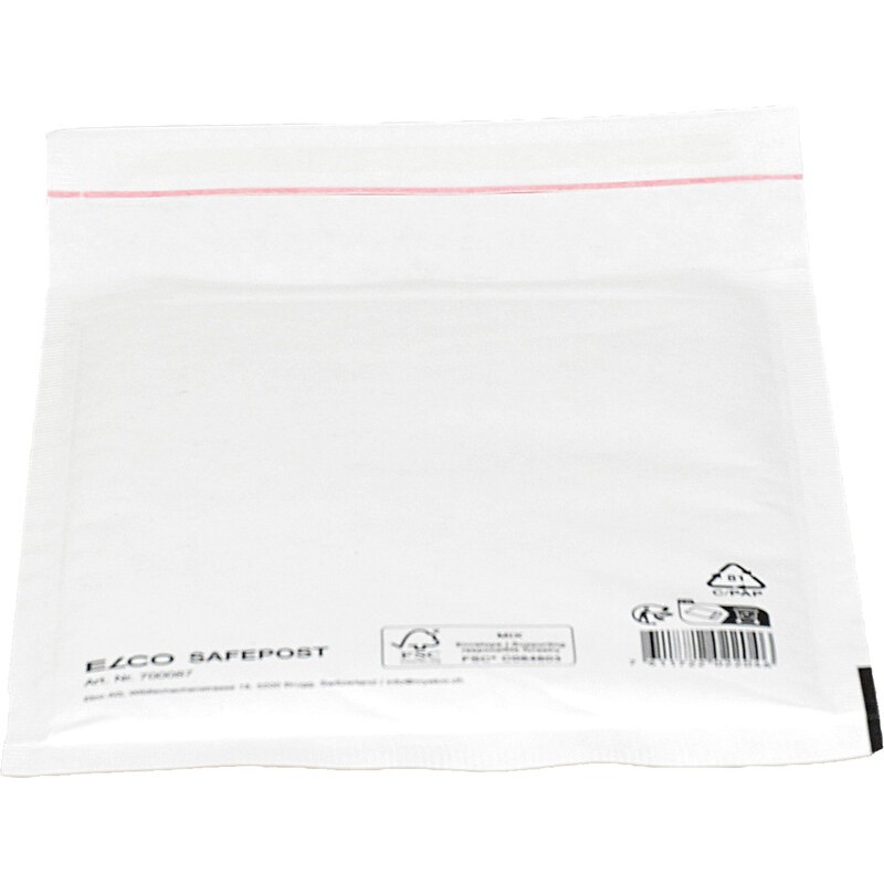 ELCO Luftpolstertaschen Safepost aus Papier und Kunststoff, weisse Versandtasche mit Luftpolster für den Versand von empfindlichen Gegenständen, Bag-in-bag-System mit herausnehmbarer Innentasche aus Kunststoff, Aussentasche aus Papier, mit Haftklebeverschluss. Nachhaltigkeit eco:plus: zerlegbar konstruiert, recyclingfähig. Zertifikat: FSC.