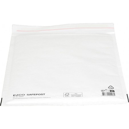 ELCO Luftpolstertaschen Safepost aus Papier und Kunststoff, weisse Versandtasche mit Luftpolster für den Versand von empfindlichen Gegenständen, Bag-in-bag-System mit herausnehmbarer Innentasche aus Kunststoff, Aussentasche aus Papier, mit Haftklebeverschluss. Nachhaltigkeit eco:plus: zerlegbar konstruiert, recyclingfähig. Zertifikat: FSC.