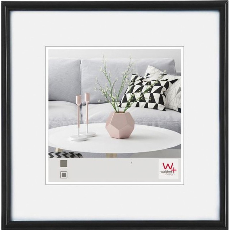 WALTHER Wechselrahmen Galeria halbrundes Kunststoffprofil, Profil 9,6 x 19 mm, gewaschenes Klarglas, mit Jumbo-Aufhänger, Format 400 x 400 mm. Nachhaltigkeit eco:plus: zerlegbar konstruiert, recyclingfähig, recycelter Bestandteil, Recycelgehalt Abfall nach Gebrauch max. 20%, umweltfreundliche Verpackung.