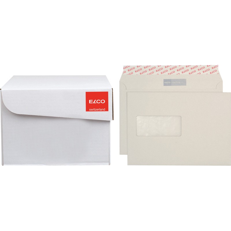 ELCO Briefumschläge sycling in Bürogrosspackung 100% Recycling, grau, hervorragende Opazität. Nachhaltigkeit eco:plus: recyclingfähig. Zertifikat: Der Blaue Engel. C5, mit Optifix® Haftklebeverschluss 229 x 162 mm, Façon DNG-HK. Schachtel zu 500 Stück.