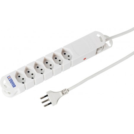 STEFFEN Steckdosenleiste aus PC, Steckdosen T13, mit Reset-Schalter (Überlastschutz), Kabellänge 3 m, Kabel Td 3 x 1 mm2, weiss, Stecker T12, 2 Magnete, Kabelwickelvorrichtung, Kinderschutz, Belastbarkeit max. 10 A / 230 V. ohne Ein-/Aus-Schalter