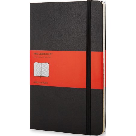 MOLESKINE® Notizbuch Organizer Adressen aus PP, Gummiband zum Verschliessen, abgerundete Ecken, säurefreies Papier, Lesezeichen, interne Falttasche aus Karton und Textil, mit alphabetischer Gliederung. Nachhaltigkeit eco:plus: Recycelgehalt Abfall nach Gebrauch max. 50%. Zertifikat: FSC. Large 130 x 210 mm, fester Einband, 240 Seiten