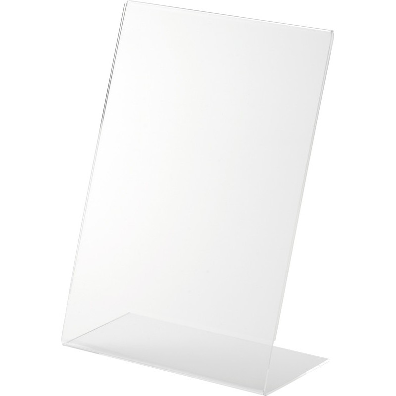 HELIT Tischaufsteller the presenter aus glasklarem, hochwertigem Acryl, standfest und unempfindlich, seitlicher Plakataustausch. Nachhaltigkeit eco:plus: verlängertes Produktleben, recyclingfähig, Recycelgehalt Abfall nach Gebrauch max. 100%, Abfallminderung.
