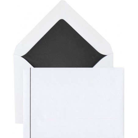 ELCO Trauer-Briefumschläge Deuil weiss mit schwarzer Linie, schwarz gefüttert, 100 g/m2, mit gummierter Spitzklappe. Cello-zip zu 25 Stück. Nachhaltigkeit eco:plus: recyclingfähig. Zertifikat: FSC.