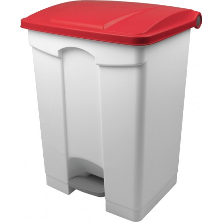 HELIT Tretabfallbehälter the step aus schlagfestem PP, hygienisch durch Fusspedal zu öffnen. Nachhaltigkeit eco:plus: verlängertes Produktleben, recyclingfähig, Recycelgehalt Abfall nach Gebrauch max. 100%. Inhalt 70 l, B 500 x H 680 x T 410 mm