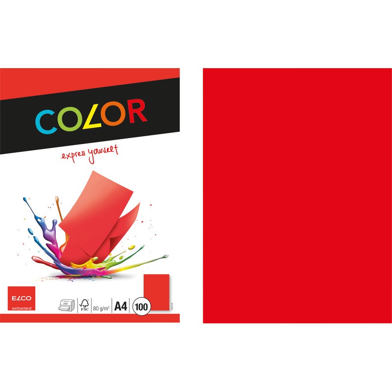 ELCO Universalpapier Color Format A4, 80 g/m2. Geeignet für Kopierer, Laser-/ Inkjetdrucker und Farblaserdrucker/ -kopierer. Nachhaltigkeit eco:plus: recyclingfähig. Zertifikat: FSC. farbenrein Packung zu 100 Blatt.