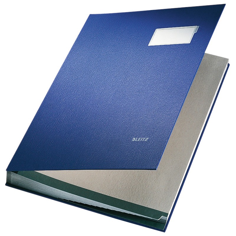 LEITZ® Unterschriftenmappe aus recyceltem Graukarton, mit PP-Folie kaschiert, wasserabweisend, dehnbarer Rücken aus reissfestem laminiertem Papier, Schaulöcher, verstärktes Griffregister, mit Beschriftungsschild, 20-teilig, für Format A4. Masse: B 240 x T 340 mm.