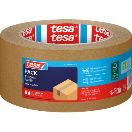 TESA® Papier-Verpackungsband ecoLogo® braun, Rollenkern aus 100% Recyclingkarton, 92% biobasiertes Material, starke Klebkraft und reissfest, aber von Hand einreissbar, mit Synthesekautschuk-Klebmasse, zum sortenreinen Verschliessen von Umschlägen, Schachteln und Paketen, lösungsmittelfrei. Nachhaltigkeit eco:plus: recyclingfähig, recycelter Bestandteil, Recycelgehalt Abfall vor Gebrauch max. 92%, Recycelgehalt Abfall nach Gebrauch max. 92%, Abfallminderung, umweltfreundliche Verpackung. Zertifikat: FSC.