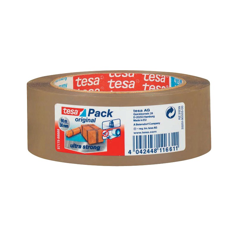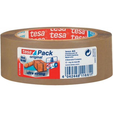 TESA® Verpackungsband PVC ultra strong mit Naturkautschuk-Klebmasse, sehr starke Klebkraft, extrem reissfest, für schwere bis mittelschwere Pakete, gleichmässiges und geräuschloses Abrollen.
