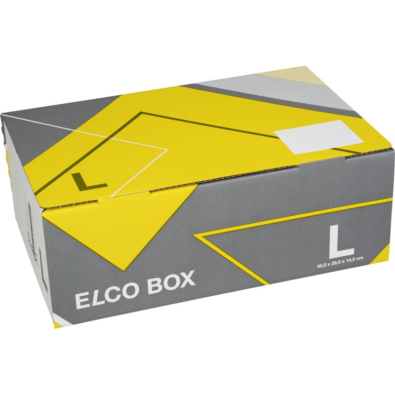 ELCO Versandbox Elco Box gelb/anthrazit stabiler Versandkarton, flach geliefert, leichtes Aufrichten durch vorgefertigte 4-Punkt-Klebung, Verschlusslasche mit Sicherheits-Gegenverriegelung. Nachhaltigkeit eco:plus: zerlegbar konstruiert, recyclingfähig. Zertifikat: FSC.