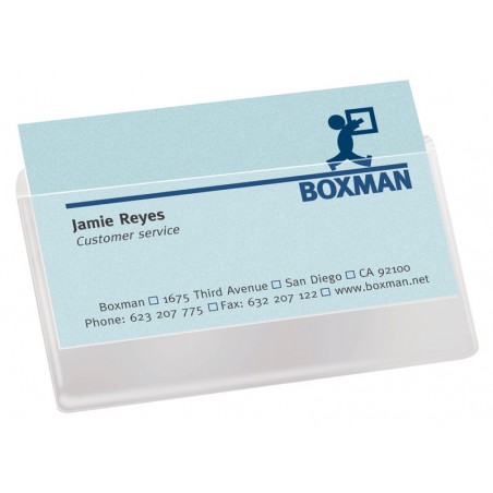 DJOIS Visitenkartentaschen PP 120 Micron, transparent, selbstklebend, mit Griffausschnitt, Format 95 x 60 mm. Nachhaltigkeit eco:plus: recyclingfähig, Recycelgehalt Abfall nach Gebrauch max. 67%.