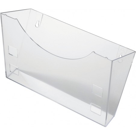 HELIT Wandhalter the grid zur Wandanbringung eines oder mehrerer Prospekthalter A4, A5/A6, glasklar. Masse: B 240 x H 165 x T 105 mm. Nachhaltigkeit eco:plus: verlängertes Produktleben, recyclingfähig, Recycelgehalt Abfall nach Gebrauch max. 100%, Abfallminderung.