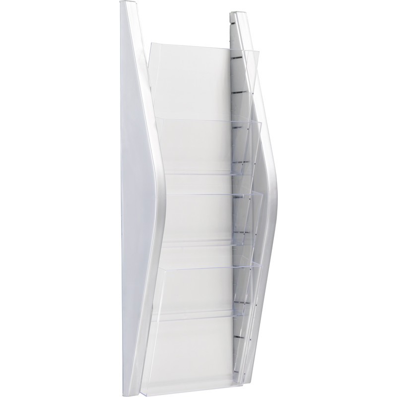HELIT Bogendisplay the arc aus PS, Fachtiefe 23 mm, silber, montiert geliefert, inkl. Wandbefestigungsmaterial. Nachhaltigkeit eco:plus: verlängertes Produktleben, recyclingfähig, Recycelgehalt Abfall nach Gebrauch max. 100%, Abfallminderung.