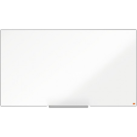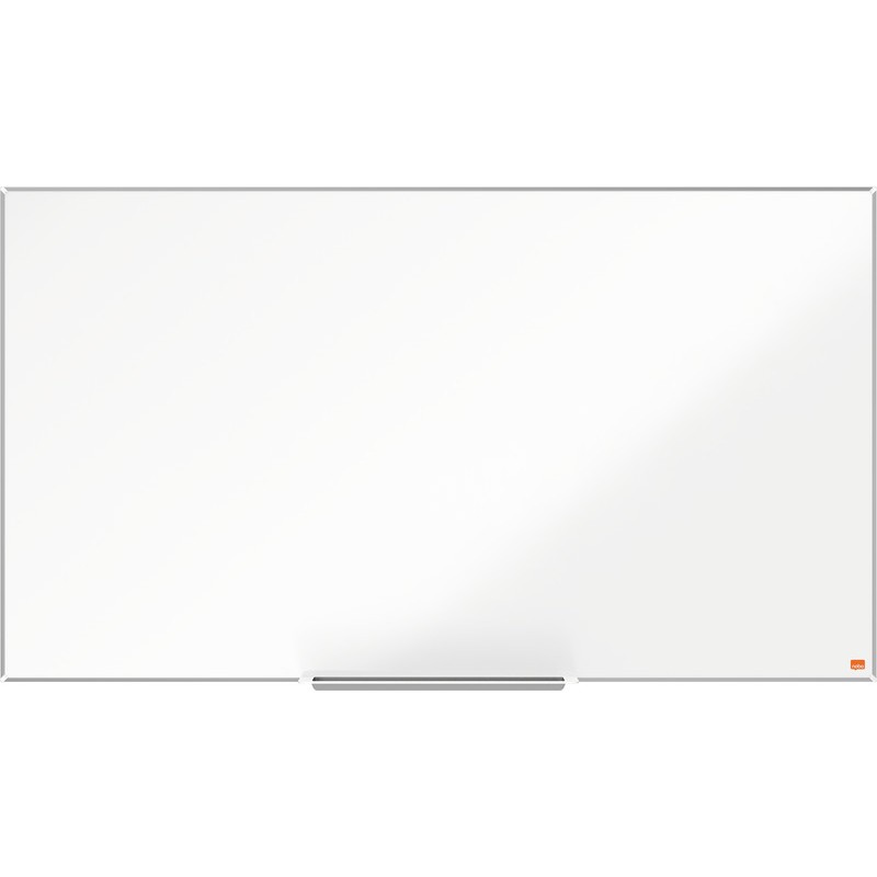 NOBO® Weisswandtafel Widescreen Impression Pro Emaille weisse, trocken abwischbare, magnetische, emaillierte Oberfläche, gute Löscheigenschaften und hohe Widerstandsfähigkeit gegen Farb- und Stiftflecken, Kratzer und Dellen, für den langfristigen Gebrauch geeignet, hervorragende Lesbarkeit der Schrift, spiegelt nicht, besonders strapazierfähig, kratz- und schlagfeste Oberfläche, schlanker Rahmen, gut zugängliche und extra grosse Nutzfläche, Stifteablage wird unterhalb der Weisswandtafel montiert ohne Überlappen der Schreibfläche, InvisaMount(TM) Montagesystem zur einfachen und unsichtbaren Anbringung an der Wand, inkl. abnehmbarer Stifteablage, NOBO® Stift und Befestigungsset. Garantie: 25 Jahre auf die Oberfläche bei normalen Einsatzbedingungen. 122 x 69 cm 55'