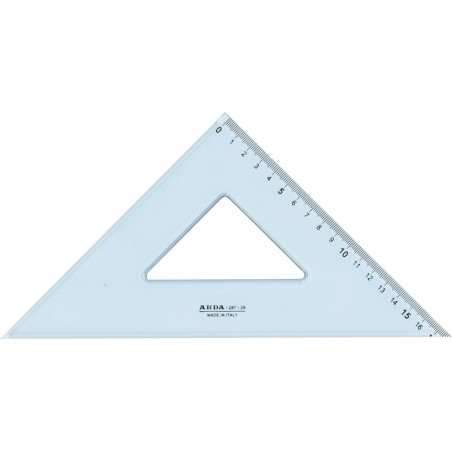 ARDA® Winkel Uni aus glasklarem PS, mit Tuschekante, Innenausschnitt, Masseinteilung in mm, eingeprägt.