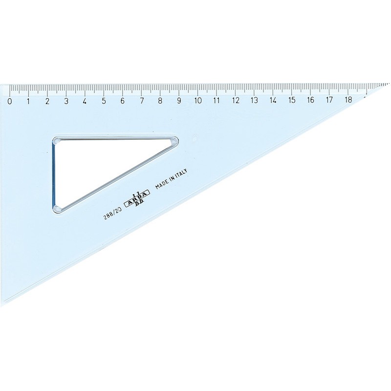 ARDA® Winkel Uni aus glasklarem PS, mit Tuschekante, Innenausschnitt, Masseinteilung in mm, eingeprägt.