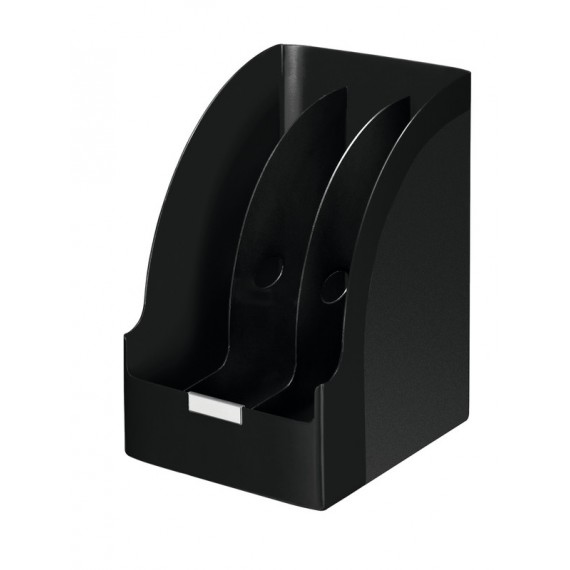 LEITZ® Stehsammler Click & Store aus PP laminiertem Hartkarton, austauschbares Beschriftungsschild auf Vorder- und Rückseite, flach geliefert, leichtes Aufbauen dank praktischer Druckknöpfe, für Format A4. Aussenmasse: B 103 x H 330 x T 253 mm.