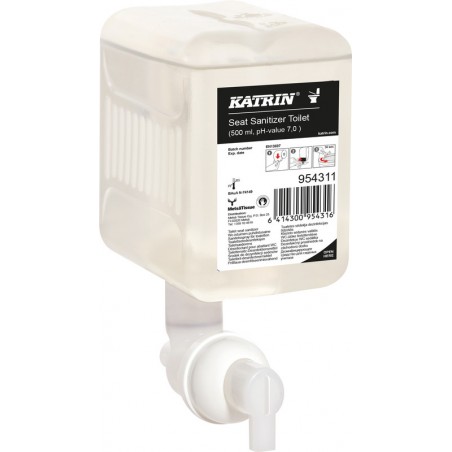 Désinfectant pour cuvette de toilette KATRIN® Toilet Inclusive Refill compatible avec les distributeurs de savon KATRIN® Inclusive, pour un nettoyage efficace, rapide et intelligent des toilettes publiques, n'agresse pas la peau. Flacon de 500 ml. Durabilité eco:plus: emballage respectueux de l'environnement.