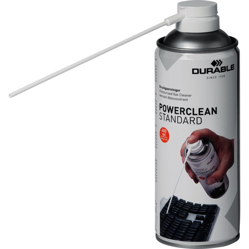 Gaz de dépoussiérage DURABLE Powerclean® Standard 400 gaz dépoussiérant avec tube de rallonge pratique pour dépoussiérer les endroits difficiles d'accès, inflammable. Tube de 400 ml. Durabilité eco:plus: recyclable.