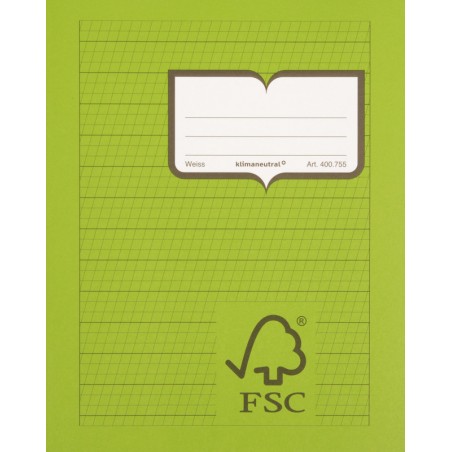 Cahier scolaire NATURA LINE certifié papier blanc, 90 g/m2, sans buvard, chaque réglure a sa propre couleur de couverture, climatiquement neutre. Durabilité eco:plus: recyclable. Certification: FSC. in-4° / E5 40 pages, format: 175 x 220 mm.