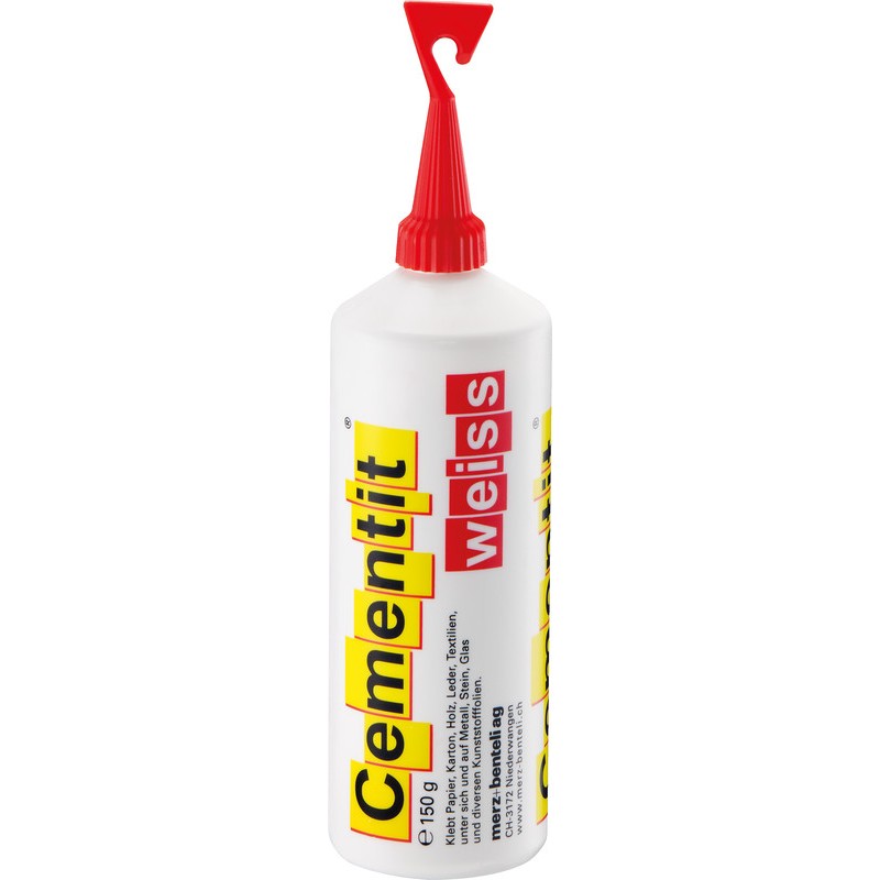 CEMENTIT® blanche colle papier, carton, bois, cuir, textiles entre eux et sur métal, pierre et verre, sans solvants. Durabilité eco:plus: construit pour être démontable, recyclable, teneur en déchets recyclés après utilisation max. 100%.