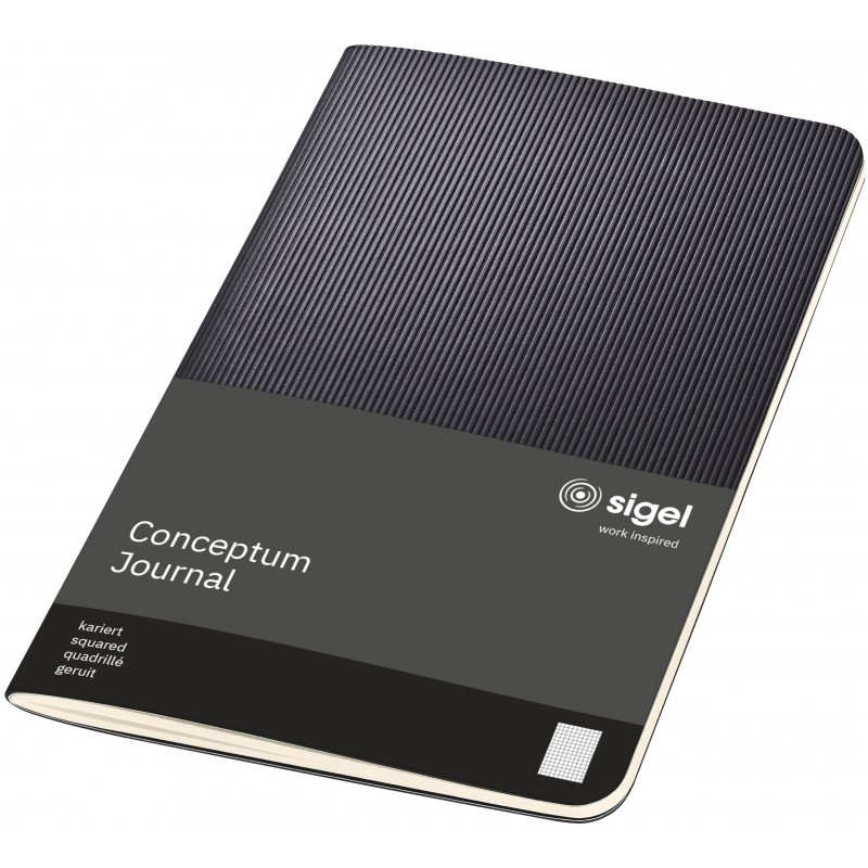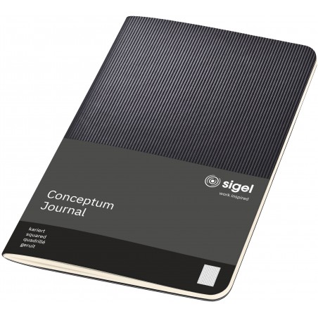 Cahier de notes noir CONCEPTUM®. Couverture souple « Softcover » en matière synthétique à finition striée. Reliure à couture solide. Avec pochette « Quickpocket » en fin de cahier. Papier de couleur crème. Certifié PEFC.