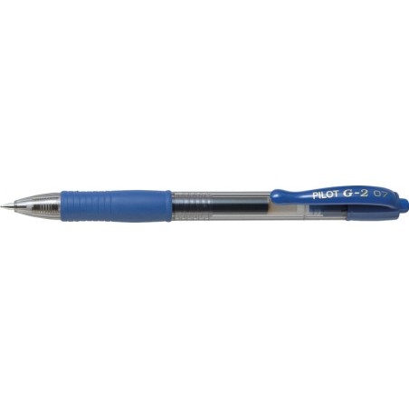 Roller à encre gel PILOT G-2 pointe en métal, grip caoutchouc antidérapant et clip dans la couleur de l'encre, rétractable, rechargeable, largeur de la bille 0,7 mm, largeur de trait 0,37 mm. Durabilité eco:plus: durée de vie du produit prolongée.