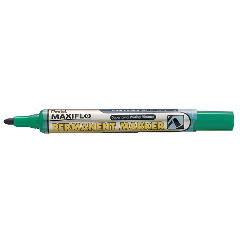 Marqueur permanent PENTEL Maxiflo NLF50 pointe conique, bouton-poussoir pour réencrage de la pointe, encre liquide fluide et inodore, non rechargeable, largeur de trait env. 4,5 mm.