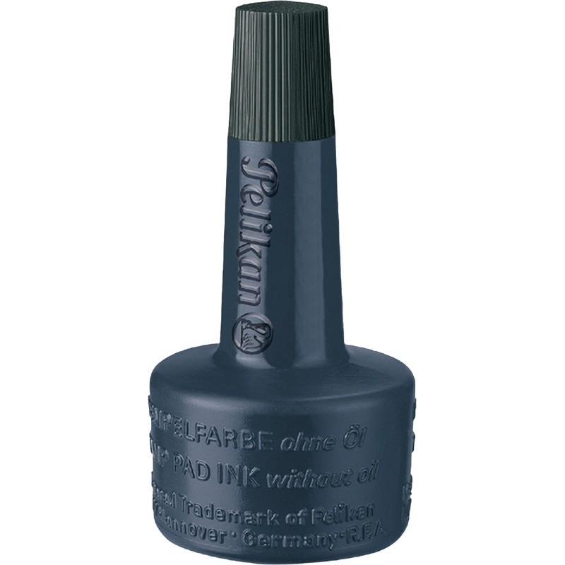 Encre à tampon PELIKAN sans huile flacon d'encre avec applicateur pour tampons encreurs, pour les tampons en caoutchouc et polymère. Flacon de 28 ml.