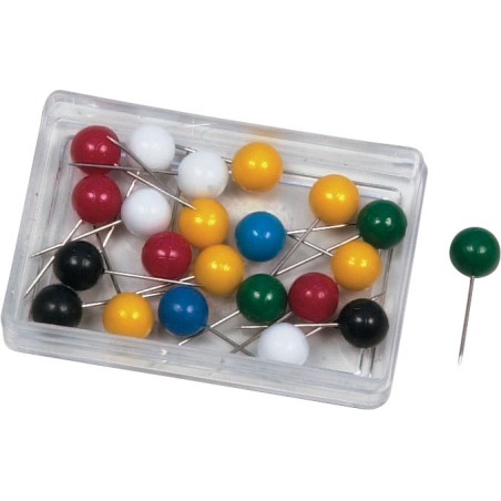 Epingles de signalisation ALCO pour cartes géographiques couleurs assorties épingles en acier fin incassable, têtes en plastique. Dimensions: L 16 mm, tête Ø 8 mm. Emballage de 20 pièces.