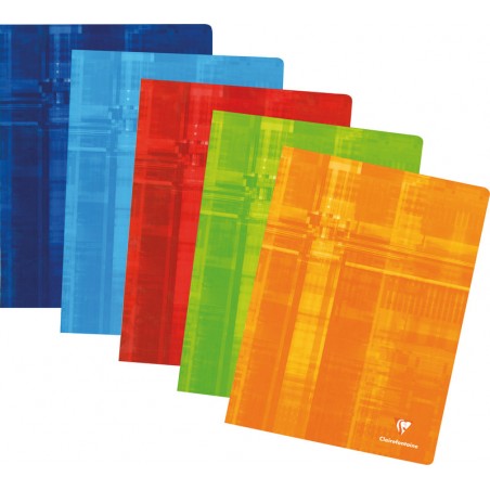 Cahier CLAIREFONTAINE avec réglure couverture laminée, papier blanc, 90 g/m2, couleurs assorties. Durabilité eco:plus: recyclable. Certification: PEFC.